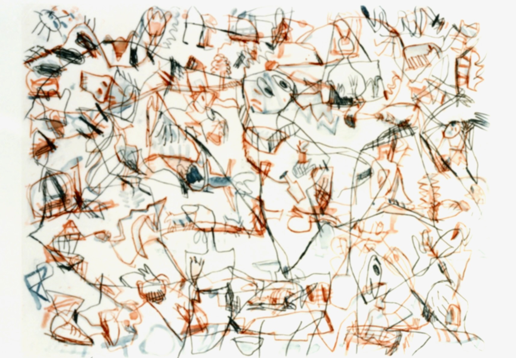 2 | Schriftbild, 1991, Farbradierung, sign., dat., num. und bet., 57 x 77,5 cm auf span. Bütten, DM 460,-