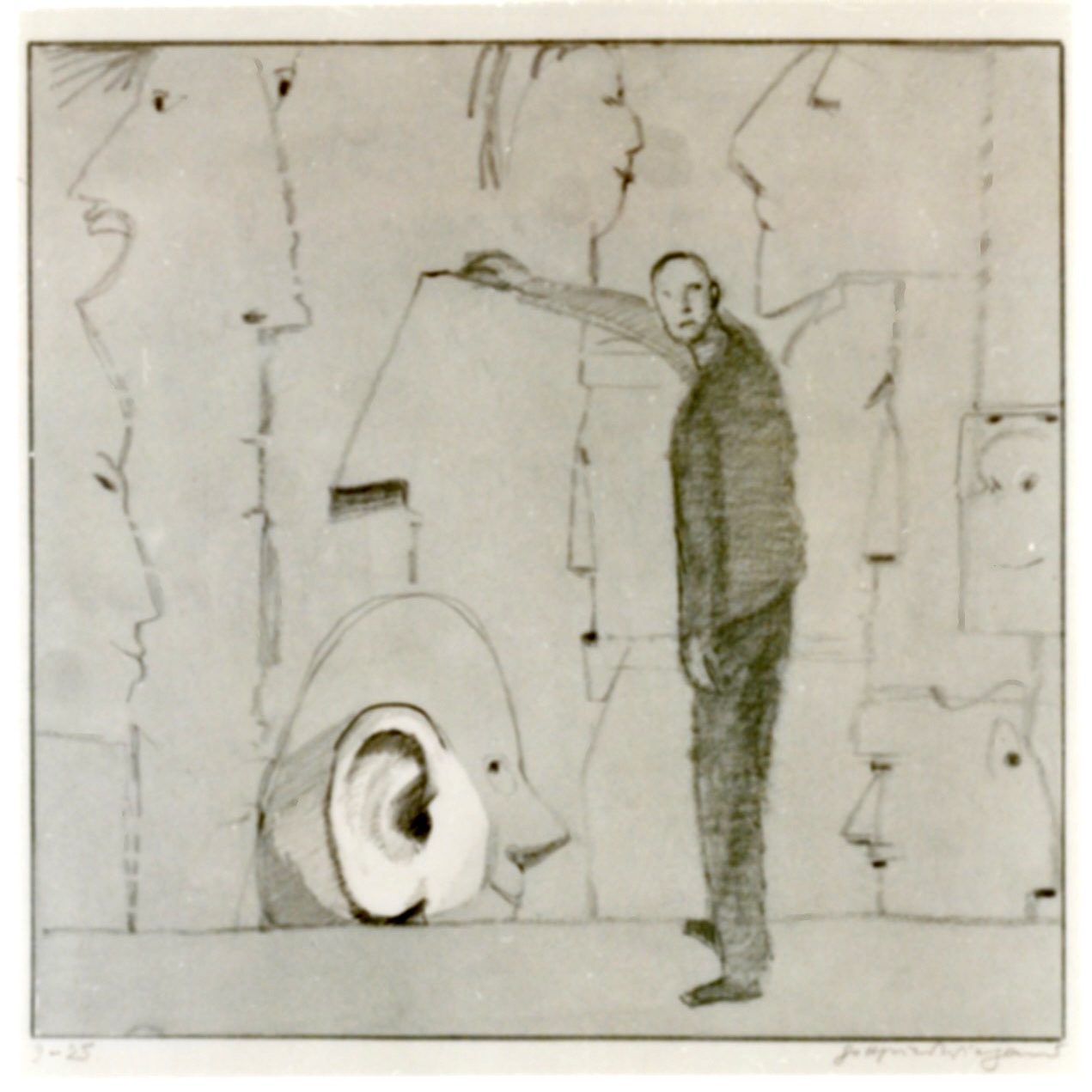 25 | Der Maler ist im Bilde, 1993 Offsetdruck, überzeichnet mit Bleistift, jedes Blatt hat Unikatcharakter, sign. und num., 28 x 29 auf 50 x 40 cm, Elfenbeinkarton matt Vier Exemplare für den Förderverein, DM 495,-