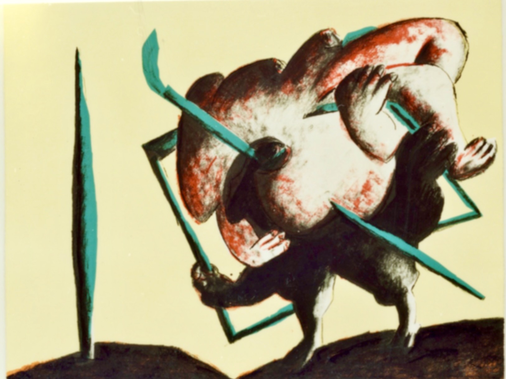 16 | Ohne Titel, 1981 Offsetlithographie,, drei Farben, handkoloriert, sign. und num., 20,6 x 28,5 cm Widmungsarbeit zur Festschrift für Eduard Trier, Berlin 1981. Elf Exemplare für den Förderverein, DM 260,-
